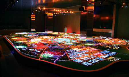 項目名稱:包頭稀土高新區規劃模型比例:1:800模型尺寸:1050*570CM項目簡介:北京模型公司設計的本規劃模型通過多媒體系統控制,背面安裝了LED液晶顯示屏,頂部配有搖頭燈、染色燈,通過